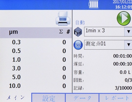 ※粒径:0.3/0.5/1.0/3.0/5.0/10µm 6ch同時測定