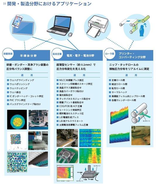 超薄型約0.1mm厚のフィルム状センサシートに加わる圧力分布を読み取り、PC画面上において様々な表示・分析することが可能なシステムです。
